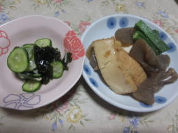 きゅうりの和え物・厚揚げの煮物 |