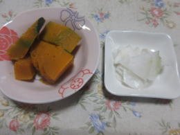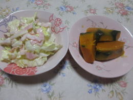 白菜とリンゴのサラダ:南瓜の煮物 |