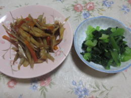 きんぴらごぼう:小松菜の辛し和え |