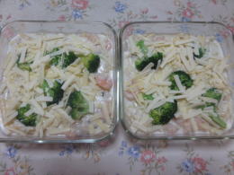 エビグラタン:初めて大きな器2個使用