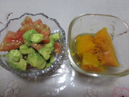 アボカドとトマトサラダ:かぼちゃ煮物 |