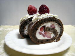 8、飾り用に生クリームを絞り、苺を乗せて、粉砂糖をふります。 |