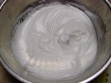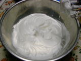 卵白を泡立て器で、初めはほぐすように静かに泡立て、泡の大きさが