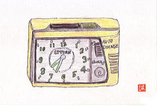 長年お世話になっていた目覚まし時計が とうとう壊れてしまいました。 お別れ前に感謝を込めて絵にしました。