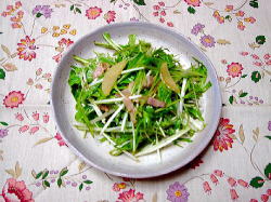 1 みず菜は洗って水を切り5cmくらいに切り、ボールに入れる。