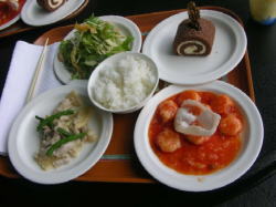 | アラジンのホールニューワールド スペシャルセット(\1590) サラダに中から一品を選ぶ 海老のチリソース 鶏肉と筍のうま煮 ライス デザートの中から一品選ぶ ヴォルケイニア・レストランにて 東京ディズニーシー |