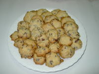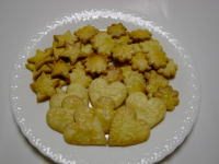 | バレンタイデーにクッキーを2種類作りました。 チョコチップはチョコとクルミをたくさん入れました。 右はシンプルなクッキーです。 型はハート・星・花形2種類、型抜きをする時が とても楽しい。 |