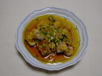 | 中華料理人の周富徳さんの鶏肉の香味ソースかけを作りました。 玉子の衣をつけて焼いた鶏肉の香ばしさと香味ソースが良くマッチしています。 長ネギの青い部分を香味ソースに使うのも、無駄を出さないので嬉しい。 |