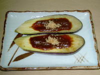 | akemiさんのレシピからナスの田楽を作りました。 これまで焼きなすにして生姜醤油でいただいていましたが、 もうひとつナスのレパートリーが増えて嬉しい。 <田楽味噌の作り方> 白味噌(40g)、赤味噌(30g)、だし汁(大さじ3)、砂糖(大さじ1と1/2)、 みりん(小さじ1)を鍋に入れよく混ぜてから、火にかけ少し煮詰め、 照りを出して、火から下ろし、卵黄を手早く混ぜ合わせる。 フライパンでナスの両面を焼き、味噌をぬりゴマを散らす。 |