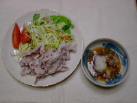 | 我が家でよく作る超簡単冷シャブです。 たくさんの大根おろしといただくので食欲のない時にも良い献立です。 豚肉をお湯にくぐらせ、氷水でさまして水気を取り、付け合せの野菜と盛り付けます。 大根おろしをたっぷり入れたポン酢でいただきます。 |