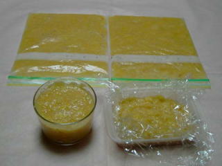 冷凍保存用に二袋、すぐ食べる為にパック、お友達用に瓶に分けました。