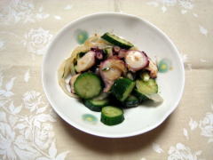タコとキュウリと玉ねぎの酢の物です。