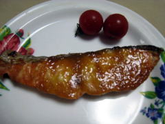 サケ(4切れ)を焼き、身に火が通ったところへ、合わせ調味料