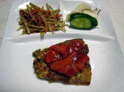 今日は塩、コショーで下味を付け、ニンニクと一緒に焼きました。