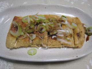 今日の料理のテレビ番組でみた「油揚げ納豆焼き」を