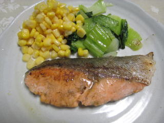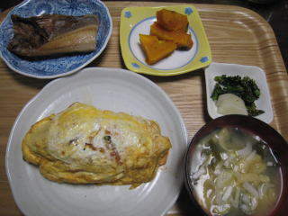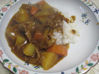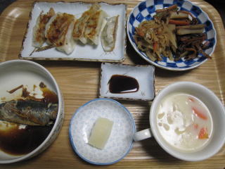 前日の作り置きのもの。冷凍餃子とシチューを