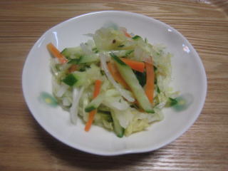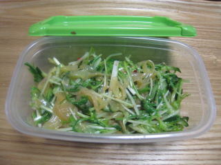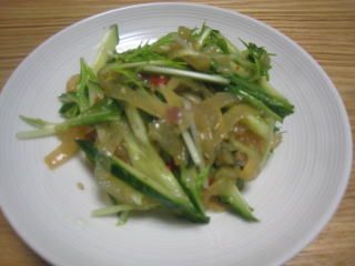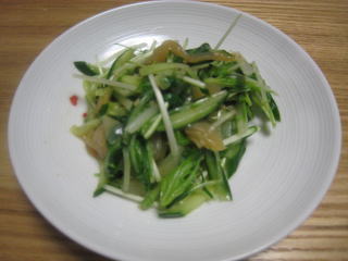 クラゲの中華サラダには、きゅうり、水菜を使いました。