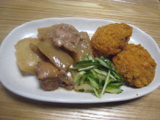 昨日のおでんと有り合わせのおかずを食べました。 |