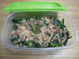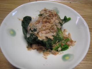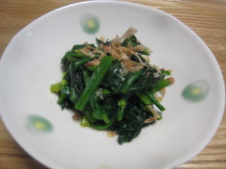 ほうれん草のお浸し、ロールキャベツ、お魚料理とのこと。