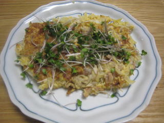 キャベツ焼きを作りました。小麦粉を使わないのでダイエットにいい。 |