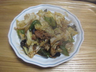 夕食は、うどんの賞味期限が近づいているので、焼きうどんにしました。 |