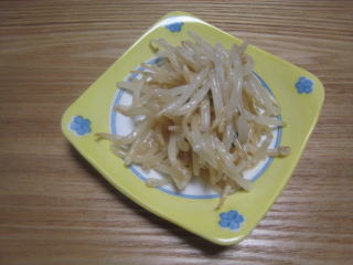 豚小間は、肉じゃがに、もやしはぎりぎりセーフでサラダにしました。 |