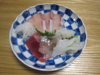 夫が惣菜を買ってくる(唐揚げ、イカの刺身) |
