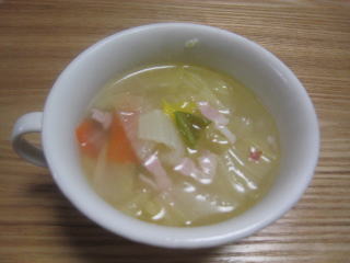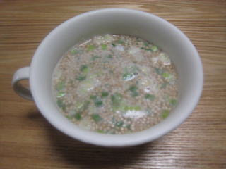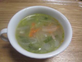 アジ、厚揚げとセロリの炒め物、カレースープ。 |