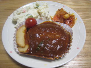 昨日の残りのハンバーグも。 |