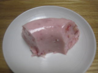 苺狩りの苺でヨーグルトゼリーにしました。蛇の目型を使用。 |