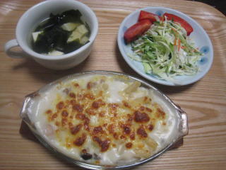 せめてと、ポテトサラダに蟹缶を入れて変化を