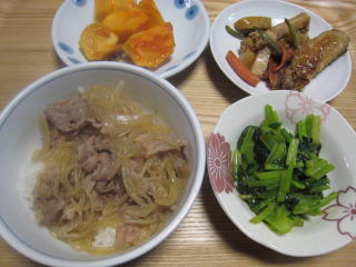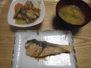 ブリの照り焼きと煮物。 |