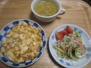 定番の麻婆豆腐ともやしのサラダ。 |