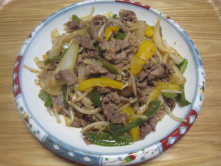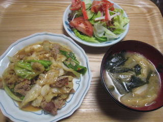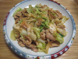 メインに土井レシピのキャベツと豚肉の味噌炒め