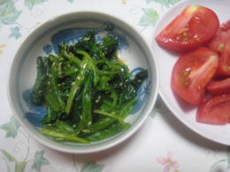 ほうれん草の胡麻和え・トマト |