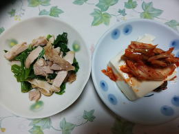 つるむらさきの和え物・湯豆腐 |