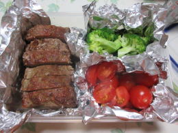 ミートローフ・ブロッコリー・トマト |