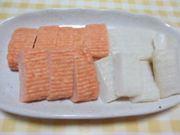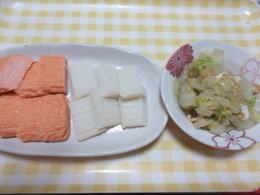 頂き物の練り物・白菜の煮浸し |