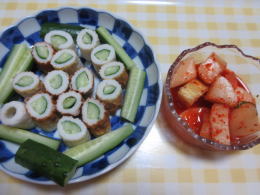 鶏胸肉の南蛮漬け・収穫小松菜 |