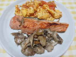 サケの塩麹ソテー、トマト玉子炒め |