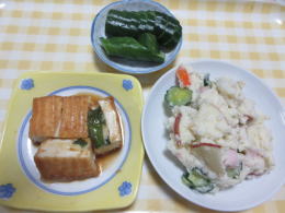 厚揚げのチーズ挟み、ポテトサラダ |