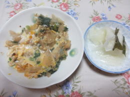 かんぴょうの玉子とじ:千枚漬け |