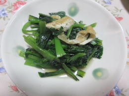 家庭菜園:小松菜の煮浸し |