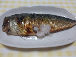 塩サバの焼き物 |