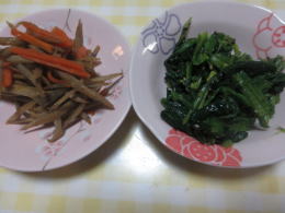 きんぴらごぼう・春菊の胡麻和え |