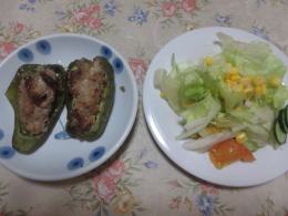 ピーマンの肉詰め:レタスサラダ |