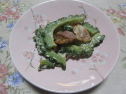 ゴーヤとベーコンの炒め物 |