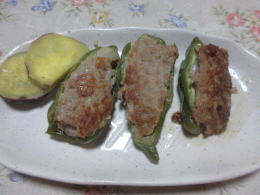 ピーマンの肉詰め:サツマイモの煮物 |