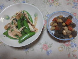 スナップエンドウと鶏肉の和え物 |