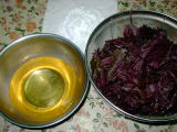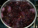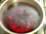 お酢と赤シソの葉を入れて10分間位煮出します。